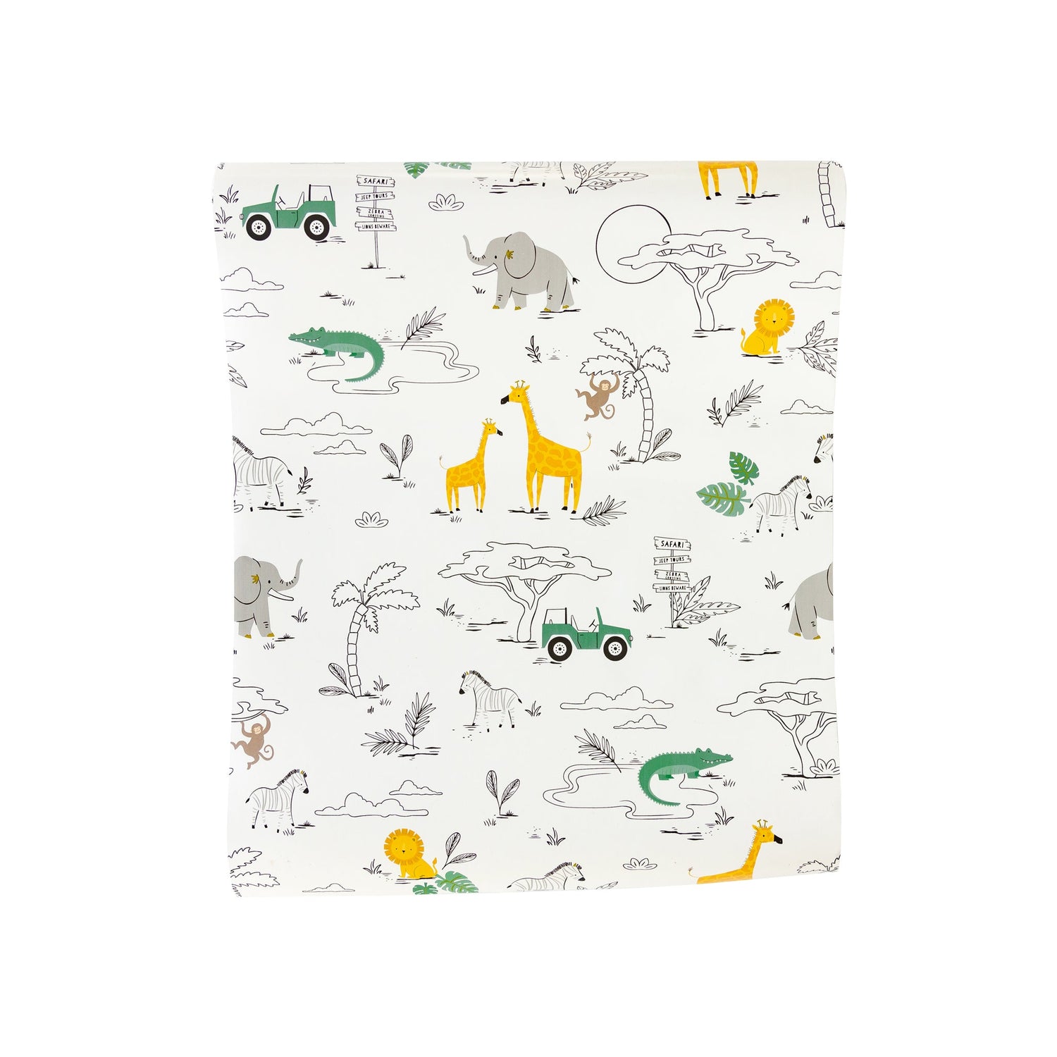 Bring the adventure to the table with this safari inspired table runner. Featuring a safari's worth of animals and whimsical jeeps, this table runner the perfect way to create a wild tablescape that will delight your little explorer at their birthday party!