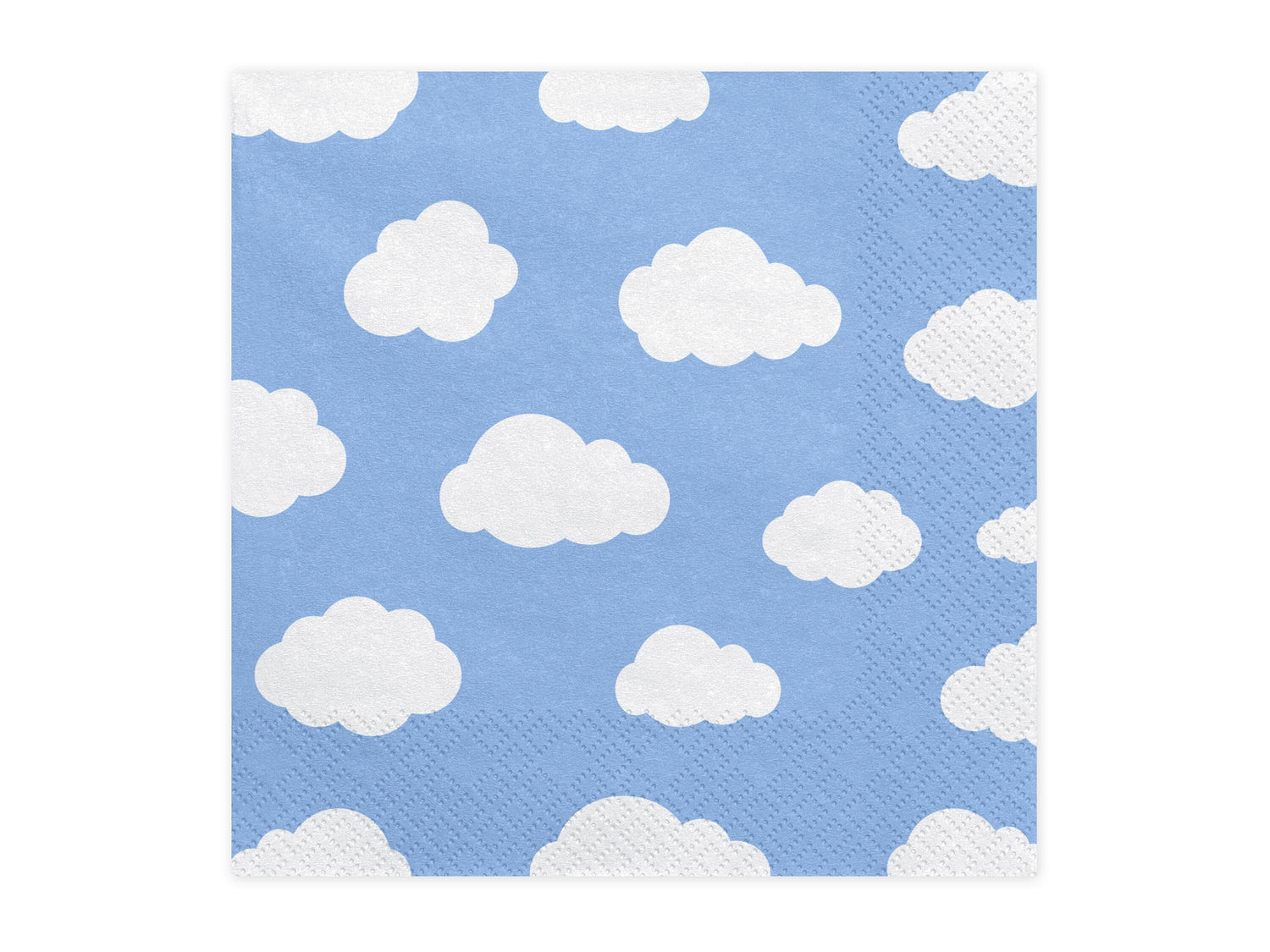Paper napkins Little Plane, sky-blue with white print, size 33 x 33 cm. (1 pkt / 20 pc.)
