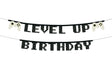 Banner with inscription ''Level up Birthday'' in black colour with colourful print include 17 rivets, height approx. 13 cm, length of banner approx. 2.5 m. DIY product.